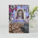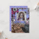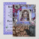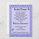 Chá de panela do Dia das Bruxas Chic com noiva trancada na Casa olhando pela janela com uma árvore assustadora, um corvo e aranhas e velas roxas. Raven está sentado na lápide que diz mais. Tem carimbo de correio correspondente.