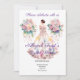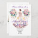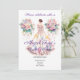 Chá de panela com noiva vestida com um vestido elegante de casamento. Flores rosa. Texto editável para que você possa personalizar facilmente. Convite na frente e RSVP nas costas.