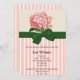 Um convite bonito para que uma noiva bonita seja! Caracteriza um hydrangea cor-de-rosa na parte superior e um teste padrão listrado cor-de-rosa e branco na parte inferior. Um gráfico de uma fita verde e o arco separam os dois. Todo o texto é customizável.