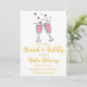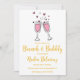 Elevem seu chá de panela com essa design de moda e moda. Apresentando uma delicada garrafa de champanhe rosa e dourada cercada por elementos florais bonitos modernos, esta design é perfeita para uma celebração com tema de brunch. Os detalhes botânicos acrescentam um toque de beleza natural, enquanto os tons esbranquiçados criam uma atmosfera macia e feminina. Este convite certamente impressionará seus convidados e dará o tom para um chá de panela memorável.