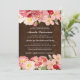 Design rústico moderno que caracteriza um fundo de madeira escuro e ilustrações dos rosas do vintage com botões e folhas do verde. Design elegante, feminino e na moda do chá de panela. Estilo de pia batismal escrito à mão sofisticado, com tipografia chique clássica. O *** NOTA POR FAVOR: Se você muda a pia batismal ou o tamanho da pia batismal, pode alterar-se como seus artigos de papelaria imprimem. Imprimirá a maneira que você a vê em seu monitor. Eu não verei seu cartão uma vez que você o pede, e Zazzle não editará qualquer coisa (erros tipográficos, alinhamento, etc.).
