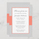 Um teste padrão cinzento à moda da viga com acentos corais é caracterizado neste chá de panela moderno. Formal e bonito -- Personalize facilmente para seu chá de panela!