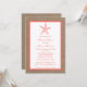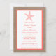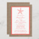 Estas estrelas de coral no chá de panela da praia de burlap farão o anúncio perfeito para qualquer noiva a ser! A design apresenta um adorável fundo de efeito de burlap rustico com uma estrela de coral fofa. Esses convites podem ser personalizados para sua ocasião especial e farão o anúncio perfeito para qualquer casamento na praia, chá de panela, festa de noivado, festa de aniversário e muito, muito mais. *Observe que o Zazzle só vende convites impressos para que esses convites não tenham nenhum material de burlap real.