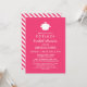 Convite para um chá de panela de sorte em cor-de-rosa e branco-quente, com um pote giro que tem tampa com um botão em forma de coração.