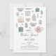 Convite moderno para chás de cozinha, com essências de cozinha em cinzas, cor-de-água rosa e azul. Sacudir a nossa unidade populacional que a cozinha convida para ver uma cinza coordenadora de volta para um toque especial extra.