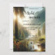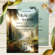 Chá de panela original com uma pintura de uma cena de montanha sonhadora com uma floresta e riacho. No verso há um modelo de código QR para facilitar a visita de seus convidados ao seu site e RSVP, bem como a visualização do registro.