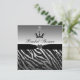 Convites de chá de panela personalizáveis de preto e prata glamourosos. Elegante e na moda personalizado, zebra estampada, estrias brilhantes, parecem convites com uma linda princesa impressa / coroa princesa com diamantes e joias pretas e uma linda joia de coração feminino impressa e uma bonito fita impressa em um fundo de gradiente de glamour prateado. Estes convites à moda sofisticados e na moda são decorados de ambos os lados. Trendy, chic, clássico, convites de moda moderna. NOTE: Todos os produtos do Zazzle têm imagens impressas em formato plano. Texto, fonte e cor da fonte são todos personalizáveis. Se precisar de ajuda para personalizar seu produto, entre em contato comigo pela loja e terei todo o prazer em ajudar.