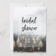 Árvores de Pinheiros de Montanha Rústica Querem Design da Floresta com imagem de fotografia suave e fraca. Uma paisagem russa ao ar livre para um abrigo aventureiro, montanha, casamento de retirada, em verde escuro, cinza, ouro e branco. - Convites para Chás de Casal de casamento! ~ Cheque meu compro para ver a suíte inteira para este design!