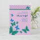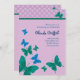 Chá de panela na moda. Borboletas das características em azul e em verde com um fundo roxo. O divertimento e os jovens projetam, perfeito para uma noiva chique. Moderno e elegante. Adicione seu próprio fraseio. Pode igualmente ser personalizado para uma festa de aniversário.