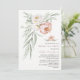 Design de cartão elegante com rosa poeirento de cor aquosa e flores brancas, pote de chá, sobre fundo branco. Use a ferramenta Personalizar para adicionar suas informações. Para obter itens correspondentes, visite minha Coleção de Flores de Rosa Dusty.