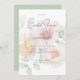 Este design apresenta um simples, mas elegante pêssego opaco e um arranjo floral de centro verde de sábado. O fundo é um belo verde macio. Criado pela imprensa simplesmente de farmácia.