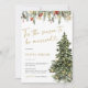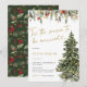 Boho Rustic Christmas Tree Twinkle Lights Winter Holiday Chá de panela. Bohemian Style Drop Botanicals Invitation with Elegant and Simple boho Rustic Tree and Pine Botanicals in Hand-print Watercolor. O fundo botânico verde e o padrão claro são lindos para chás de panela de vassoura e chás de panela de Natal. Convite simples e imprimível para chás de panela de férias e de inverno.