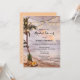 Um chá de panela elegante com uma praia tropical com palmeiras, lanternas e abacaxi com flores. A parte traseira da placa tem uma design de bolinhas (opcional).