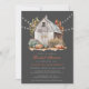 Rustic Country Barn and String Lights Fall Chá de panela - apresenta um celeiro rústico com luzes brilhantes de cordas penduradas sobre a cabeça.Celeiro é pousado com pedúnculos de milho e abóboras frescas colhidas. Mostrado com um fundo de carvão, no entanto, você pode mudar facilmente as cores na ferramenta design. O convite faz parte de uma coleção.