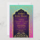 Bollywood ou Arabian Nights teme cartão de convite de festas em rosa quente, lavanda e aqua ombre com sotaques de folha de ouro.