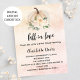Um fundo de rosa dourado e gradiente cor-de-rosa esmagado, decorado com uma abóbora e flores de cor creme. Personalize e adicione o nome e os detalhes da festa. Texto: apaixonar-se