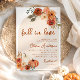 Celebrar a noiva com a nossa charmosa queda no Chá de panela Russo de Abóbora. Perfeito para um chá de outono, este convite maravilhosamente desenhado captura a essência da estação com um encanto rústico que encantará seus convidados. Apresentando uma paleta de cores quente e convidativa, o convite apresenta uma ilustração deliciosa de abóbora, adornada com folhagem elegante de outono e sotaques delicados. O fundo rústico de madeira adiciona um toque de charme do país, fazer ideal para um chá de panela aconchegante, no outono. Criado a partir de estoque de cartão de alta qualidade, esse convite garante durabilidade e um toque especial. A carta clara e elegante fornece todos os detalhes essenciais, incluindo o nome, data, hora, local e informações de RSVP da noiva. Personalize o texto para corresponder aos detalhes específicos do evento, criando um convite personalizado e memorável que reflita o estilo exclusivo da noiva. Quer você esteja planejando uma reunião íntima ou uma celebração maior, este Chá de panela Rustic Pumpkin "Cair no Amor" define o tom perfeito para um evento alegre. Convida seus convidados a se juntar à celebração do amor e do próximo casamento, fazer que eles gostem. Melhore seu chá de panela com o charme eterno do nosso Chá de panela Rustic Pumpkin "Fall in Love", projetado para capturar a beleza do outono e o entusiasmo dos próximos nupciais.