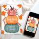 Celebre o seu chá de panela no outono deste outono com esta adorável pilha de abóboras em rosa cor-de-rosa poeirenta, laranja e azul retrô poeirado com vinhas marrons, folhas de laranja e bagas brancas com folhas caídas. O chá de panela perfeito do outono do Halloween.