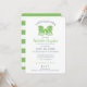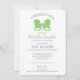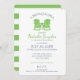 Primavera verde de maçã brilhante As cadeiras de Adirondack têm o tema chá de panela com texto azul marinho e listras verdes e brancas de maçã atrás deste elegante e clássico convite ao chá de casamento para a futura noiva e noiva. Personalize como preferido.