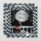 O chá de panela convida - Alice lunática, bonito e na moda, surreal em chás de panela do país das maravilhas em preto, em branco e em cinza sofisticados com uma silhueta preta bonito do vintage de Alice que leva um flamingo cor-de-rosa elegante. É estada em um balcão bonito decorado com os azulejos/quadrados cinzentos e brancos e os ornamento de suspensão bonitos da estrela. Está olhando para fora na Lua cheia grande que a está brilhando é clara na água abaixo. Há um bule branco bonito ao lado de Alice no balcão. Na moda, chás de panela modernos, chiques da arte da fantasia com um tema do vintage. Se você precisa algum auxílio que personaliza seu produto me contacta por favor através de minha loja e eu estarei feliz ajudar. As pérolas e a esteira do laço pelo ©Hazel Kinvig-Paul www.design-a-dream.co.uk satisfazem notam: Todos os convites em Zazzle têm imagens impressas do plano.