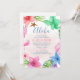 Modelo de convite de festas, estilo Havaiano, moderno, praia oceânica aloha, apresentando uma coroa colorida de flores de hibisco com folhas tropicais, um peixe-estrela, um flamingo rosa sobre um fundo rosado, cor-de-água, cor-de-rosa. +++++++++ O convite é adequado para o verão aloha, litoral, oceano, praia, destino sazonal pelas festas de casamento no mar.