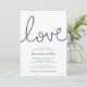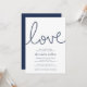 Nossos convites de chá de panela costeiros apresentam estilo náutico clássico em azul e branco de marinho eterno. "Amor" aparece por cima em marinho, com letras de nó de corda azul. Personalize com seus detalhes de chá de panela abaixo em uma combinação chic de serif e sans serif lettering. Perfeito para chás de panela de tema náutico, verão ou praia.
