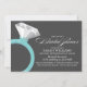 Convites de chá de panela elegantes e clássicos apresentam uma elegante e bela ilustração vetorial de um anel de diamante espumante e um local ou cor damasco.