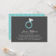 Adicione um pouco de luxo ao seu chá de panela com este Convite de Anel Azul! Apresentando um design de anel de diamante azul deslumbrante contra um fundo moderno e elegante, este convite exumenta elegância e sofisticação. O texto totalmente personalizável garante que seus detalhes de evento se destacem, fazer-o perfeito para uma celebração glamourosa.