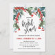 Este chá de panela de aquarela moderno é uma escolha perfeita para chás de panela durante o feriado. Apresenta ramos sagrados e bagas em vermelho, verde e azul-verde. Edite o texto de exemplo com os detalhes do evento.