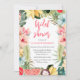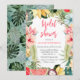 Chá de panela floral floral divertido. Com todos os detalhes tropicais de verde, flores e frutas. É fácil personalizar este convite especial.