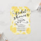 O chip moderno do colchete cortou o convite de aquarela apresentando uma fonte branca de chic e na moda com um sotaque de espiral e coração definido em um fundo de cor de água amarelo contemporâneo. Sacudir nosso chá de panela popular para ver uma correspondência de volta para um toque especial extra. Perfeito para primavera, verão, outono ou chá de panela de inverno.