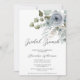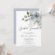 Este simples belo convite de brunch chá de panela apresenta rosas azuis refinados e empoeirados sobre um fundo branco pristino. É a escolha perfeita para começar sua jornada do dia do casamento.
