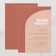 Chá de panela. Minimalista, porém impressionante: adote este design tipográfico ligeiramente retrorreflector para a sua papelaria de casamento, com um design de arco moderno e terracotta e cores laranja queimadas. Texto, cores e fundo totalmente personalizáveis.