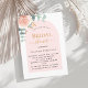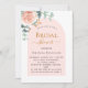 Um fundo branco chic com um arco dourado rosa. Decorados com ouro rosa e verde-verde-floral, rosa e de cor branca, cor-de-rosa-rosa, eucalipto verde. Personalize e adicione o nome da noiva a ser e os detalhes da festa. Letras pretas e ouros coloridas. Traseira: cor de fundo rosa dourada.