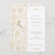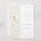 Este chá de panela é um prelúdio perfeito para a elegância que irá abranger o próximo casamento. A design apresenta um pássaro solteiro, intricadamente detalhado em ouro, com as iniciais da noiva a ser graciosamente integrada ao trabalho de arte. O fundo floral vitoriano em tons de creme suave e ouro adiciona um toque romântico e vintage à celebração do dia especial da noiva. Elementos decorativos deliciosos enquadram os detalhes do evento, enquanto o convite também inclui deliberadamente informações de registro, fazer-as belas e informativas.