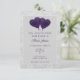 Crie um convite exclusivo para todos os seus, com um chá de panela de Balões de Corações Roxos. O design de convite apresenta um par de balões cardíacos contra um delicado fundo de damasco de rendas. Personalize com o nome da noiva junto com os detalhes do chá de panela. Material adicional disponível com esta design também.