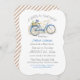Convite antiquado para bicicletas em azul e amarelo com um cheio de cesto de flores roxas de um design de aquarela pintada manualmente pela Ambrosic Art. Personalize a área no verso com informações de registro.