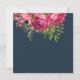 Chá de panela floral moderno elegante apresenta uma borda superior e inferior de flores rosas, cor-de-rosa, rosa e roxas, com sotaques botânicos esmagadores. Personalize com os detalhes do seu chá de panela no moderno roteiro escrito à mão e no sans serif lettering. Convites inverso a rico azul marinho com sotaque floral.