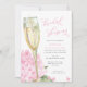 Este belo design apresenta flores cor-de-rosa, um vidro de champanhe dourado e o seu texto personalizado. Use o formulário de modelo para adicionar suas informações.