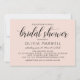 Convites de chá de panela de casamento rosa-rosados modernos e chic apresentam um design tipográfico preto-na moda com acentos de script de caligrafia em negrito e texto elegante personalizado que pode ser personalizado para o evento impressionante em honra à noiva.