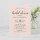 Convites de chá de panela de casamento rosa-rosados modernos e chic apresentam um design tipográfico preto-na moda com acentos de script de caligrafia em negrito e texto elegante personalizado que pode ser personalizado para o evento impressionante em honra à noiva.
