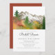 Chá de panela Rustic Fall Frost Mountain Boho - apresenta uma linda, aquarela, cena florestal com altura, pinheiros, montanhas altas e folhagem de outono, escrita à mão e tipografia moderna. Mostrada com terracota/ferrugem na parte traseira do convite, entretanto, a cor pode ser facilmente alterada para se coordenar com suas cores na ferramenta design. O chá de panela faz parte de uma coleção.