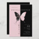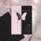 Apresente seus hóspedes a uma celebração do contraste e da beleza com o Chá de panela da borboleta negra rosa. Este design único apresenta uma borboleta cor-de-água meio rosa, metade preta, cativante, perfeitamente espelhada por um fundo contrastante que toca com luz e sombra. A mistura de elegância chica e moderna cria uma atmosfera caprichosa, mas sofisticada, fazer ideal para um chá de panela que abraça tanto a feminilidade quanto um talento gótico encantado. Este convite é uma bela representação da viagem da futura noiva, simbolizando uma vida de transformação e graça.