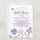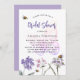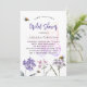Um fundo branco. Decorados com abelhas e pintados de flores silvestres em violeta, rosa e uma borboleta grande. Personalize e adicione um nome e detalhes da parte.