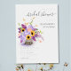 Um buquê rico feito de flores exuberantes, girassóis, lavandas, trigo, hálito de bebê, mariposa e ranúnculo faz uma bela ilustração, pintada à mão em aquarela digital, que decora este chá de panela elegante rústico. Romântico e charmoso, é uma escolha encantadora para um chá de panela de celeiro, um chá de panela ao ar livre, um chá de panela de jardim ou quintal ou qualquer cenário rústico.