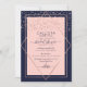 Este elegante e moderno convite de festas de chá de panela de casamento é ideal para um evento clássico e formal. Ele apresenta um confete brilhante rosa dourado esparso impresso e esparso, espalhado sobre um fino diamante geométrico e uma borda retangular com marinho azul espesso por baixo e preenchimento cor-de-rosa pincelado. É chic, luxuoso, bonito, simples e moderno; o design perfeito para o seu dia especial. ***NOTA DE DESIGN IMPORTANTE: Para qualquer solicitação de design personalizada, como solicitações de correspondência de produtos, alterações de cor, mudanças de posicionamento ou qualquer outra solicitação de alteração, clique no botão "MENSAGEM" ou envie um e-mail ao designer diretamente em lafemme.art@gmail.com. Você pode até enviar um e-mail para ela solicitando um design completamente personalizado e novo.