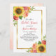 Estes convites de chá de panela apresentam um design floral de aquarelas com girassóis, flores de coral, folhas e folhagem com uma falsa borda antiga de ouro. A parte de trás dos convites tem um motivo floral de girassol correspondente em um fundo de coral de aquarela. Personalize o texto do convite com o seu próprio texto. Estes convites fazem parte de uma coleção que inclui uma série de artigos de papelaria de casamento e outros artigos de casamento. Visualize a página de coleta ou visite nossa loja para ver o intervalo de cheios.