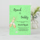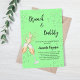 Um convite moderno, na moda e glamouroso para um Chá de panela de bolinho. Um fundo verde-claro de menta com bolhas, um par de flautas, óculos. O nome é escrito com um moderno estilo escrito à mão. Personalize e adicione os detalhes da sua festa.