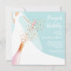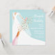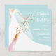 Os convites de chá de panela de Brunch e Bubble apresentam uma noiva em seu vestido e véu sobre um fundo azul em pó com uma garrafa de champanhe, sequências de vidro e faux e seus detalhes em letras brancas em chic. **DICA: O tamanho quadrado REQUER POSTAGEM EXTRA. Mais cores na nossa coleção.