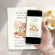 Chá de panela Brunch & Bubble com ilustração de aquarela gentil de uma mesa de jardim rural com flores, brunch e borbulha! Este delicado design senta-se sobre um fundo branco de maçã (editável) com letras brancas manuscritas. Um bonito modelo para você personalizar e aperfeiçoar para chás de panela de primavera ou verão, em casa ou no seu vinhedo ou café de jardim.